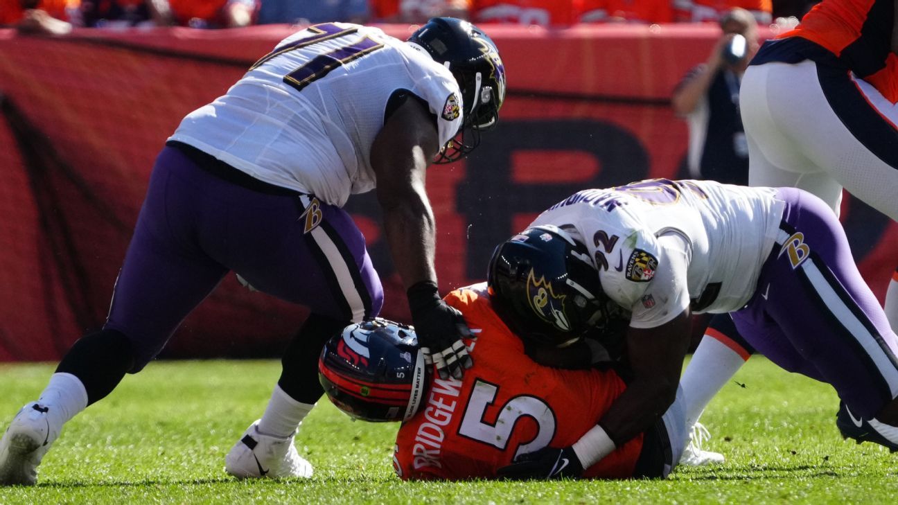 Bridgewater, who has been consistently lauded for his work on and off the field in the Broncos' undefeated September, suffered the injury on the team's last play from scrimmage in the first half. On a third-and-10 from the Broncos' 17-yard line with 53 seconds left in the half, Bridgewater was hit by Ravens linebacker Odafe Oweh on an incompletion.