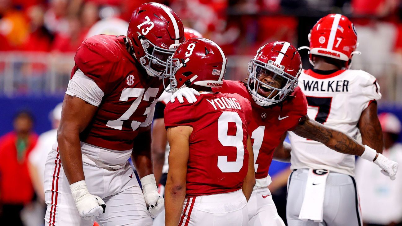Alabama played the second half without one of its top receivers, John Metchie III, who suffered what Tide officials believe to be a torn ACL in his left knee in the first half and is expected to miss the College Football Playoff, sources told ESPN's Mark Schlabach. But Jameson Williams shredded the Georgia secondary with seven catches for 184 yards and two touchdowns.